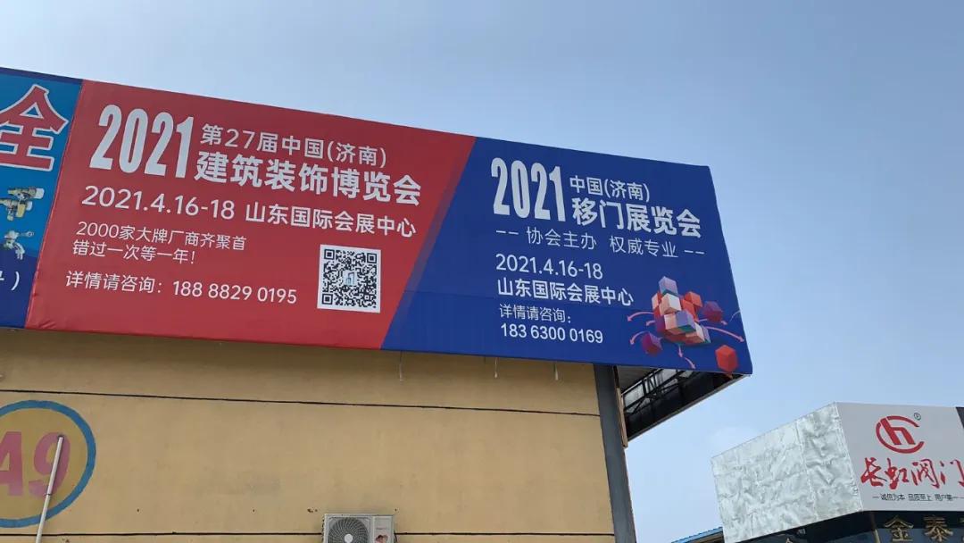 2021年第27屆中國(濟南)建筑裝飾博覽會(huì )將于2021年4月16-18日在山東國際會(huì )展中心盛大召開(kāi)!為了全面提高展會(huì )的宣傳力度,保證展會(huì )質(zhì)量及展商效果,組委會(huì )聯(lián)系線(xiàn)下建材市場(chǎng),發(fā)布展會(huì )日期,力爭將展會(huì )開(kāi)幕信息傳達給更多的業(yè)內人士。目前山東多地市建材市場(chǎng)已豎立展會(huì )廣告牌信息,您看到了嗎?